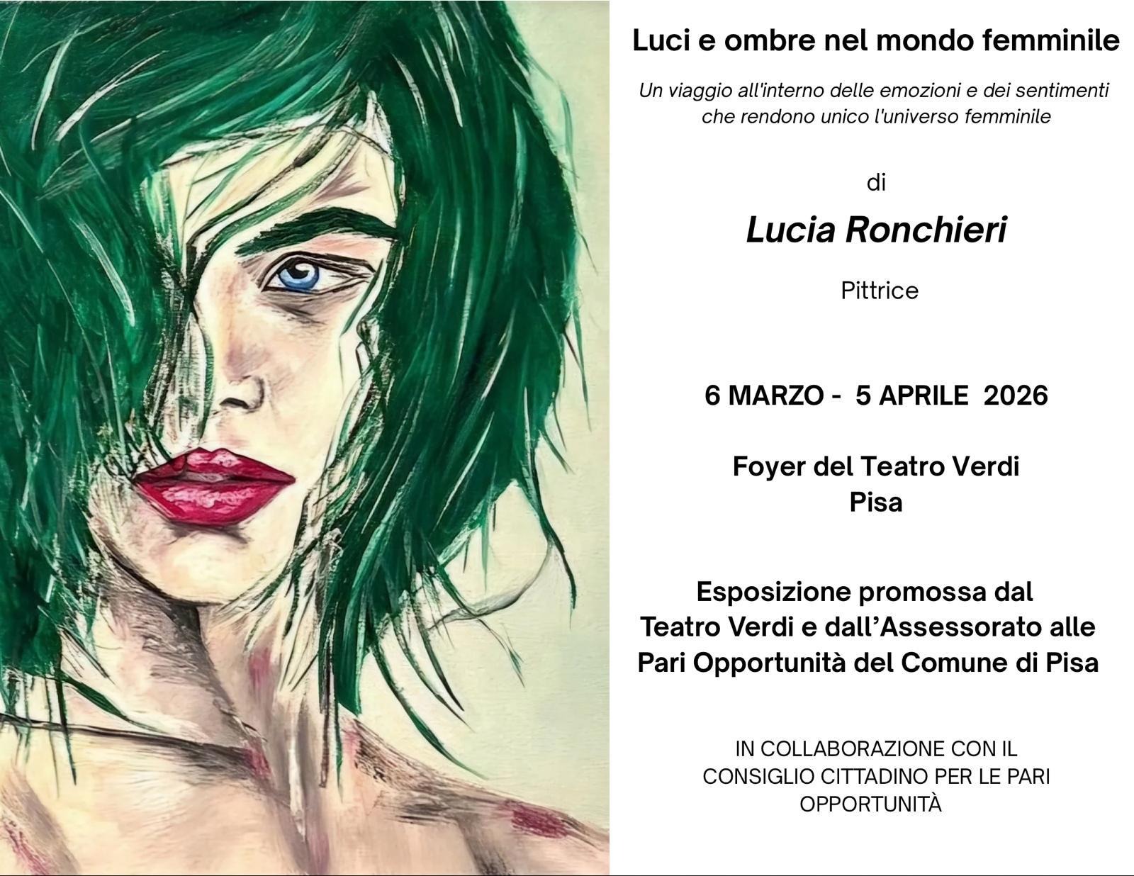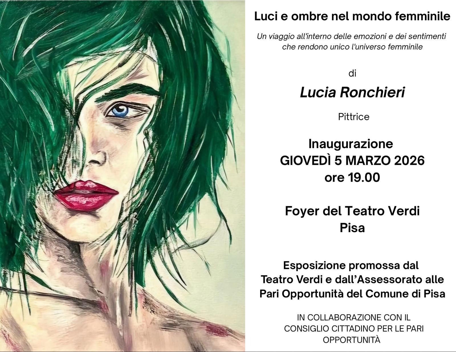 - 2026 Pisa, Teatro Verdi, mostra personale dal titolo "Luci e ombre nel mondo femminile" (dal 6 marzo al 5 aprile 2026) - Inaugurazione 5 marzo 2026